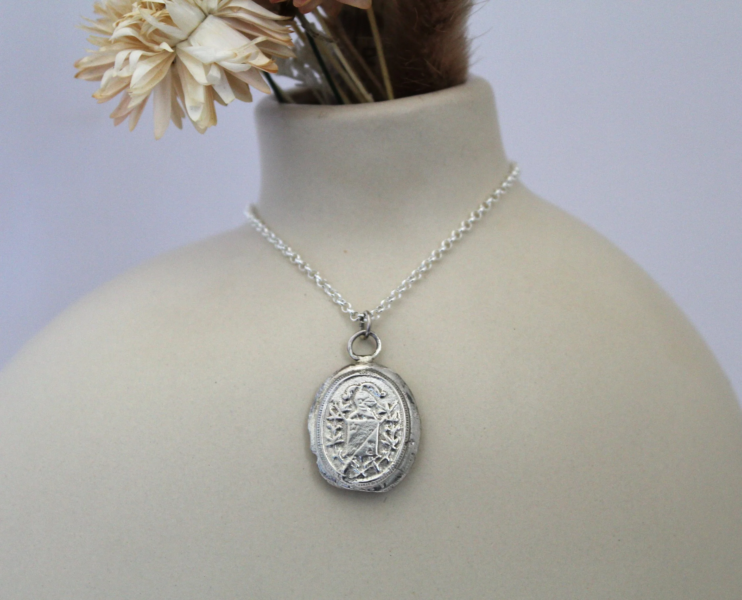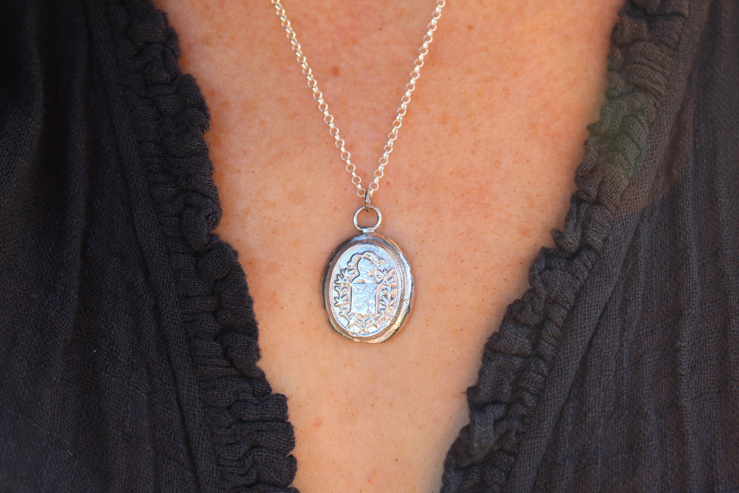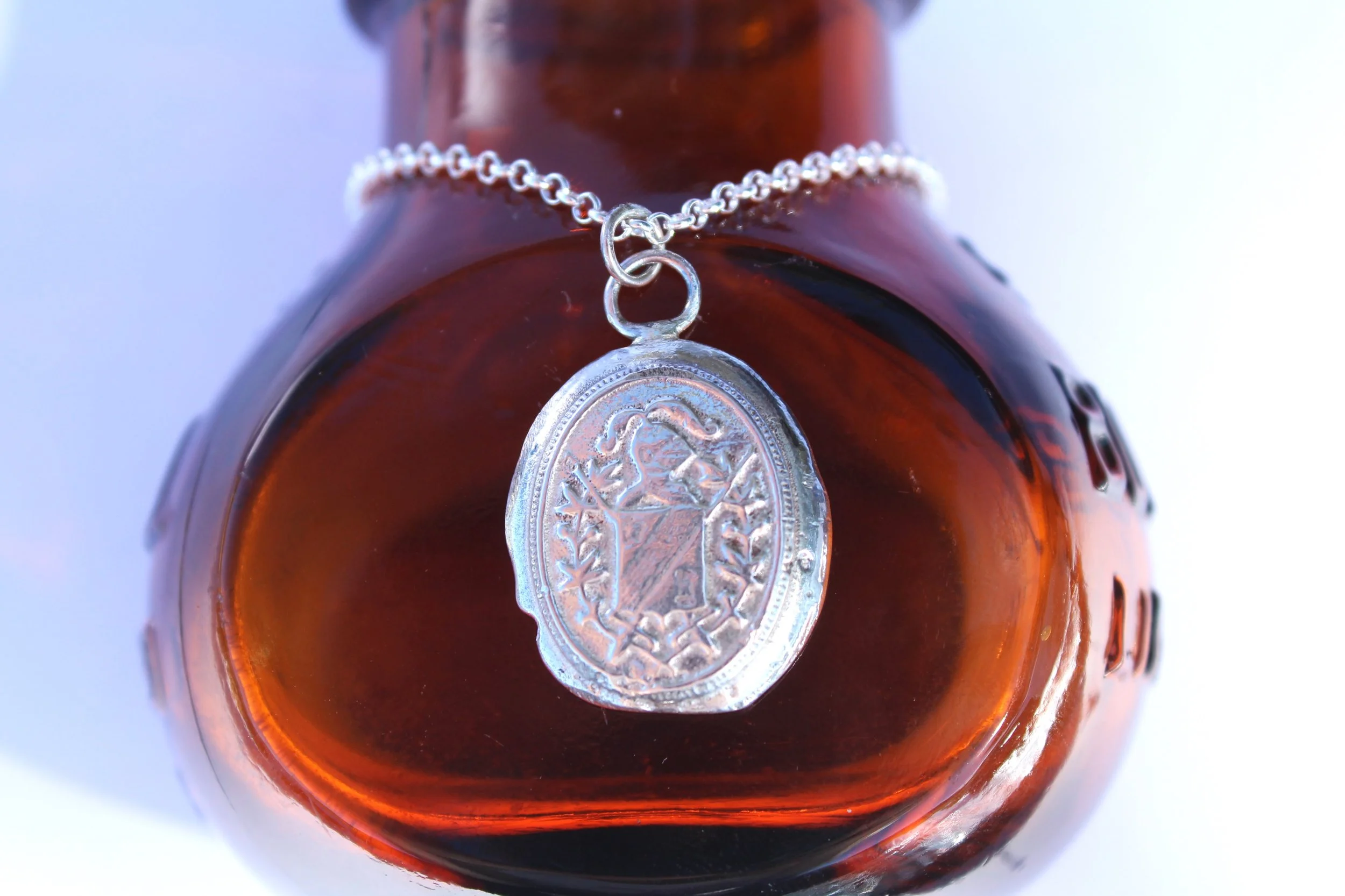 Our Sand casted coat of arms pendant has been cast from an antique civil button from the 19th century. This 200 year old button holds so many stories and by casting this piece in solid sterling silver I hoped to keep its history alive. The stories and lives this button has witnessed is monumental, if only its could talk.