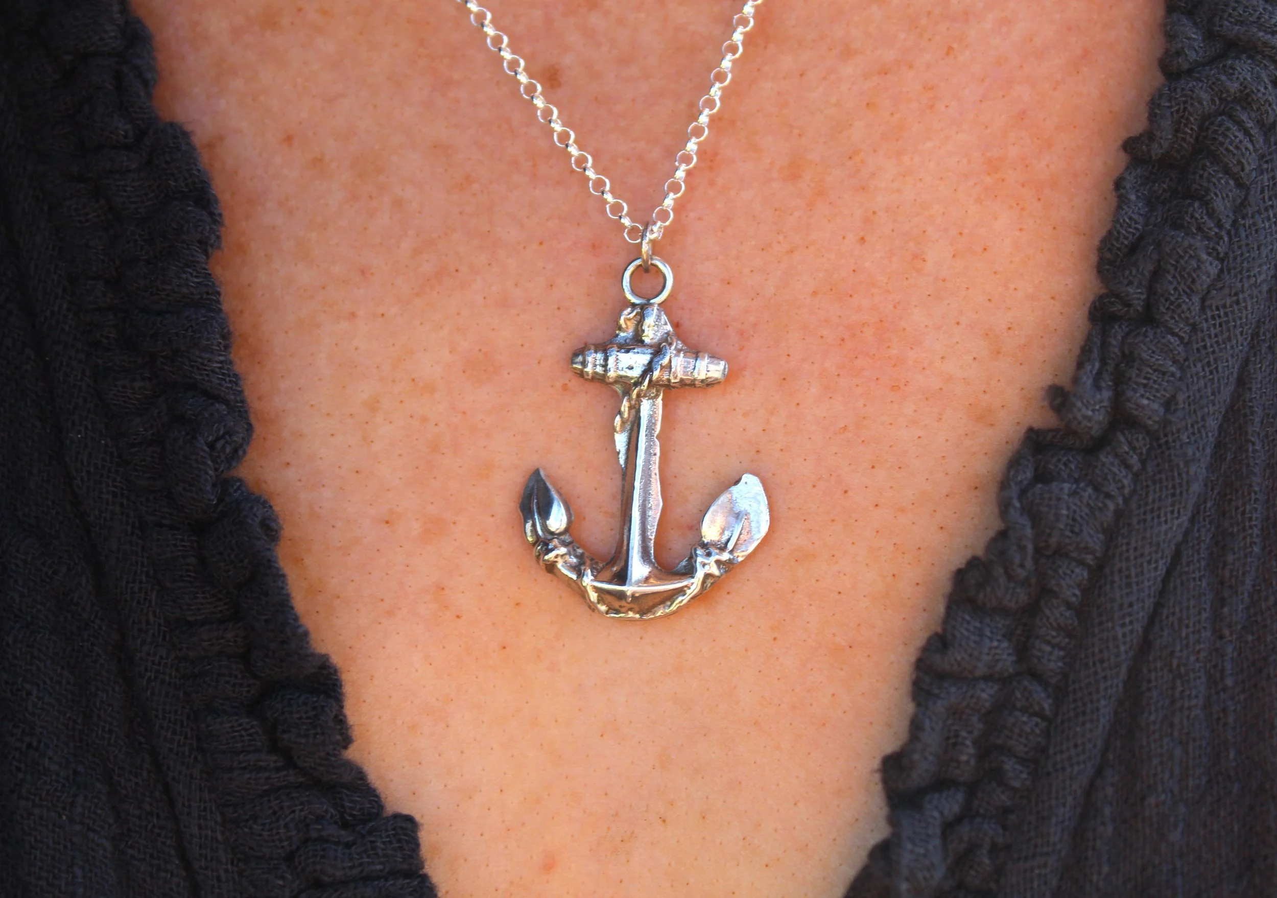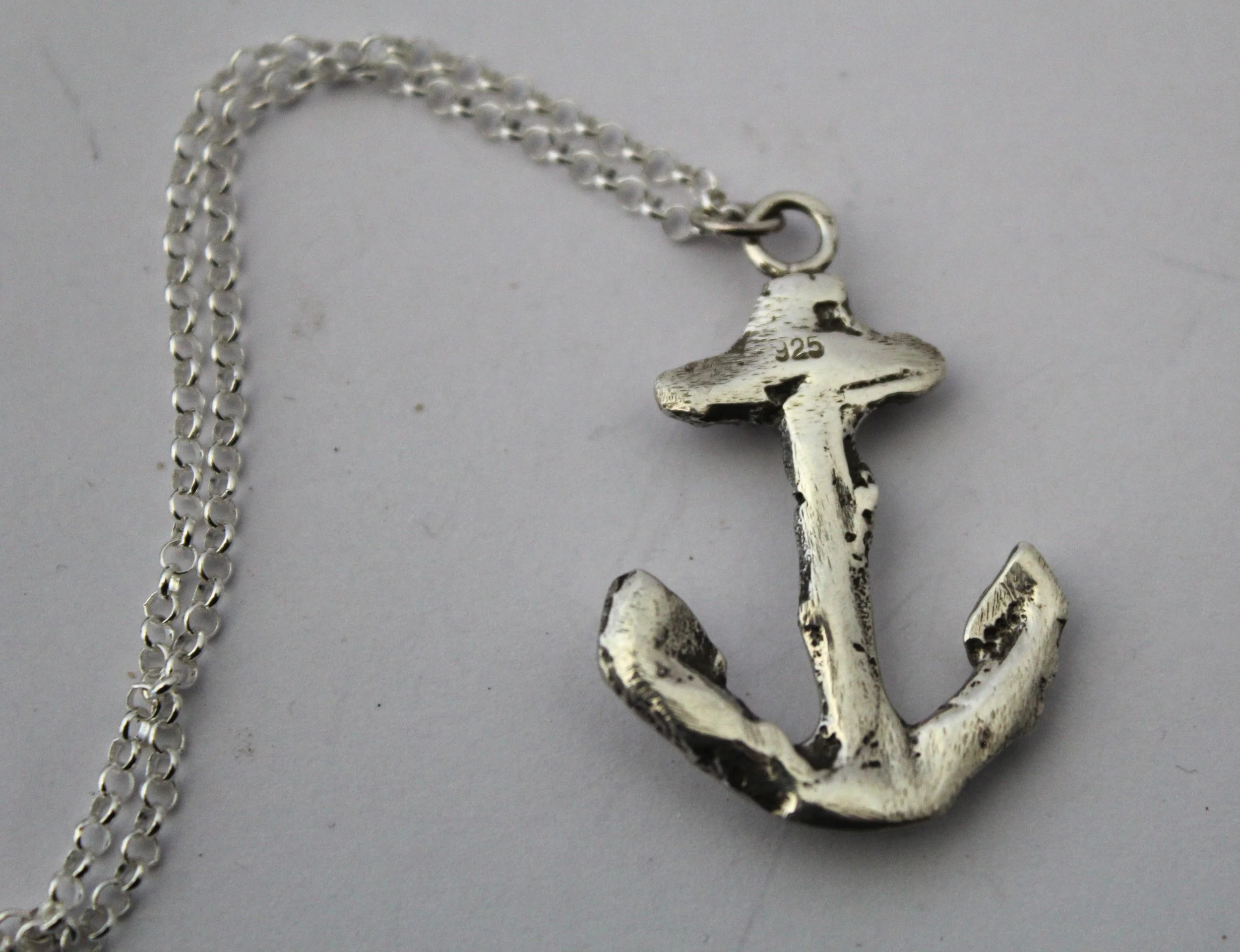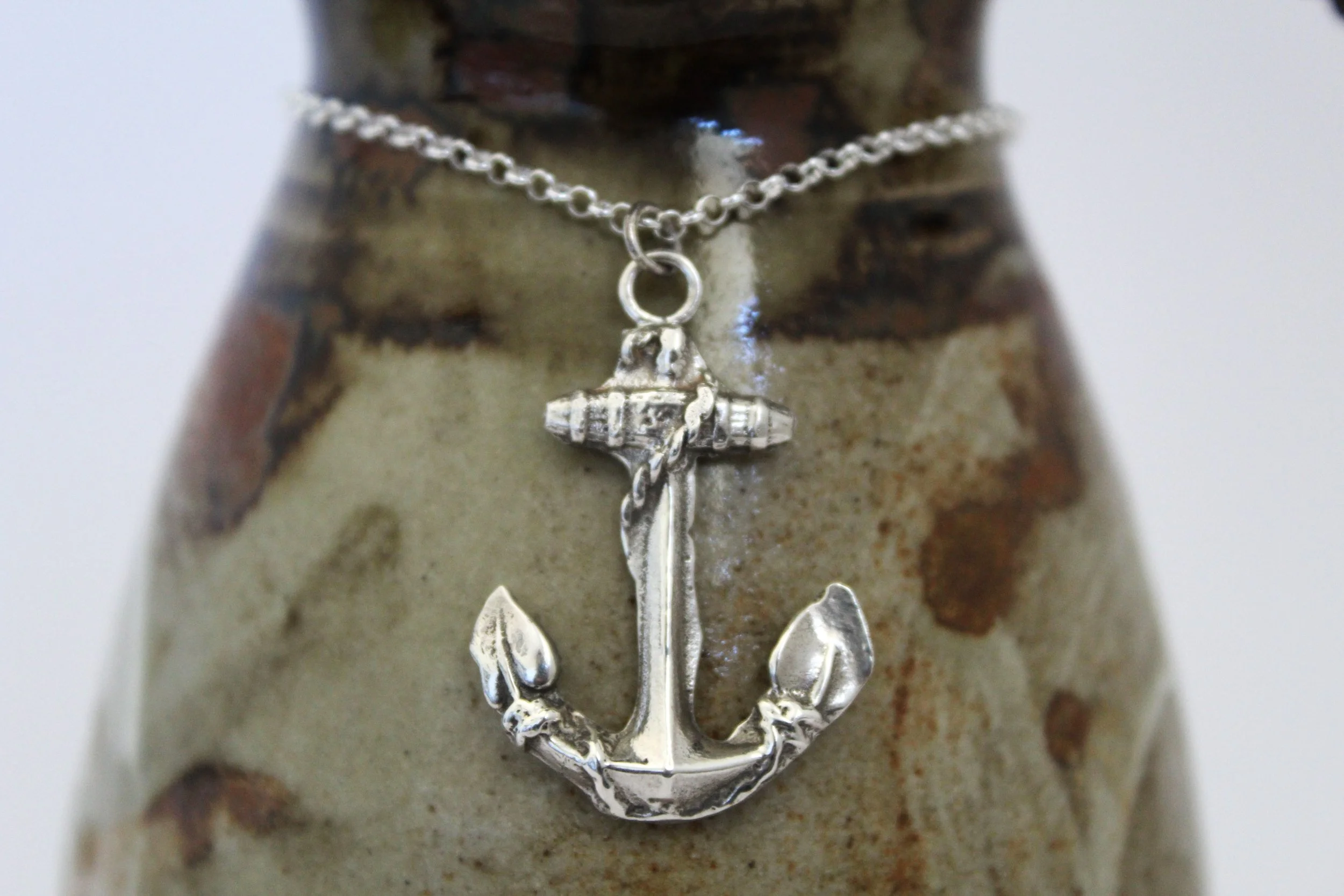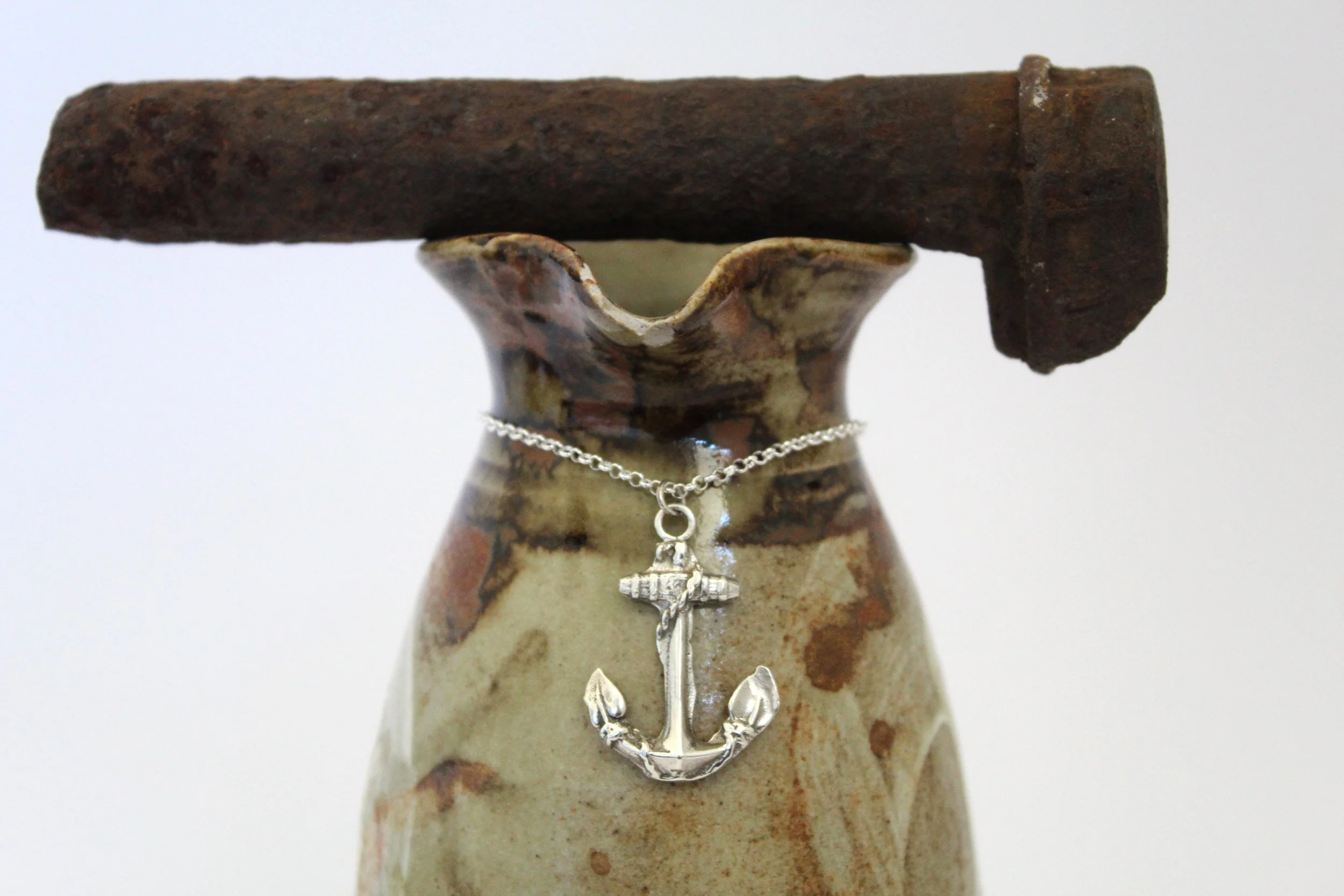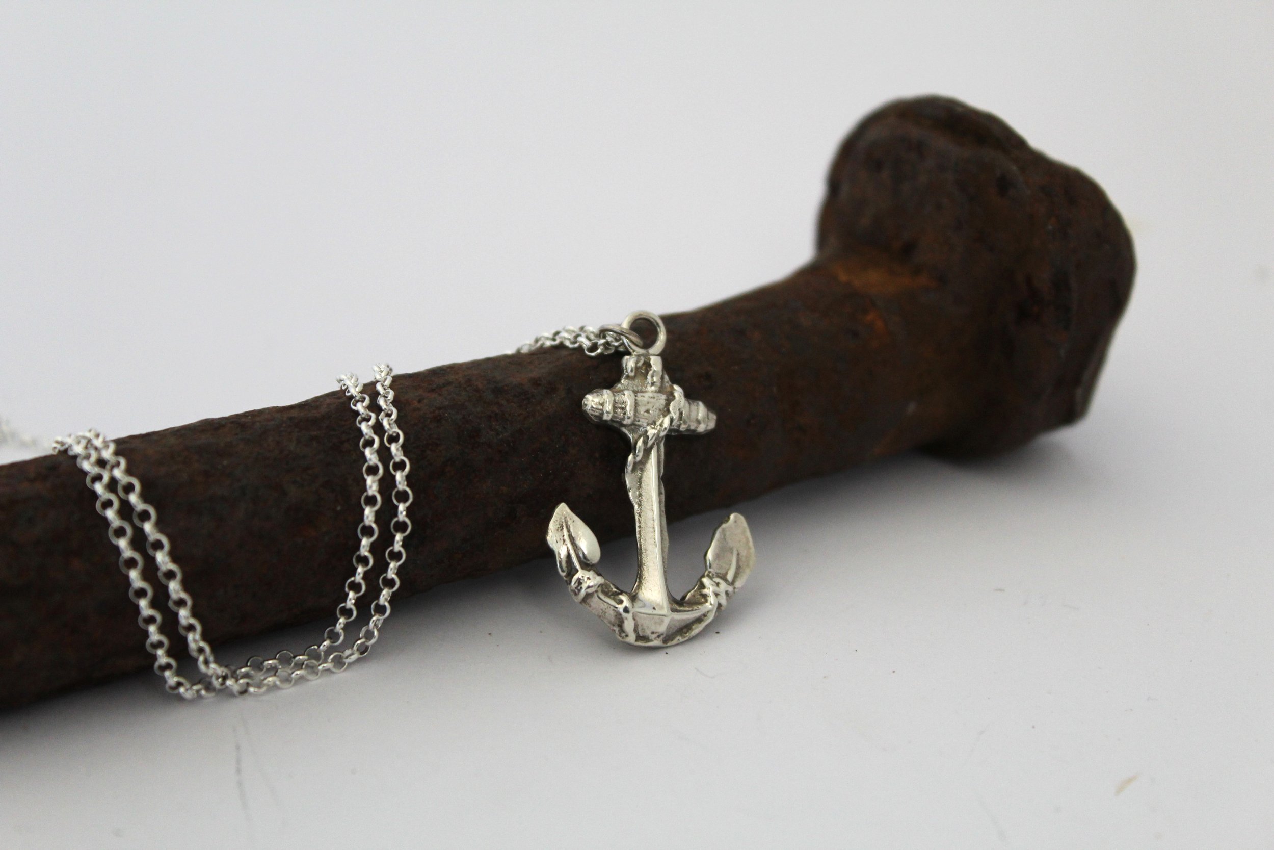 Our Weigh Anchor necklace has been cast from an early 20th century brooch that found its way to me. This fouled anchor holds so much historical symbolism with this image first appearing with its wrapping rope in 1601 when the Earl of Nottingham used it as his coat of arms. The fouled anchor has always represented strength and security to sailors and privateers. This brooch was then modelled and sand casted to create this heavily detailed anchor necklace.